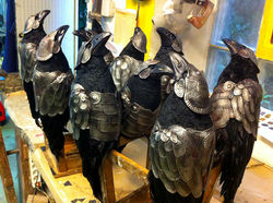 Fabrication d'une dizaine de corbeaux qui s'enfilent au bout de la main des danseurs.
